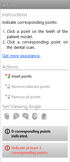 Instructions on how to indicate the corresponding points are provided. A number of actions help you to work with the defined points.