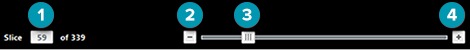 Click the plus and minus icons of the slider to move with an increment of 1 slice per click.
