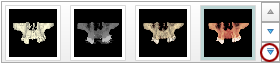 When the transfer functions gallery is closed, only four transfer function thumbnail tiles are shown. Scroll through all of the tiles using the up and down arrows at the right of the gallery. To get an overview of available transfer functions at a single glance, expand the gallery by clicking the double arrow in the bottom-right corner of the gallery.