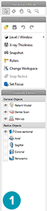 A workspace can be considered as the arrangement of 3D and 2D viewers, together with the editor panes in the Planning side bar. A workspace allows you to visualize and interact with 3D objects and/or 2D image data. Switch between the different workspace layouts available in the system to view the pre-operative image data.